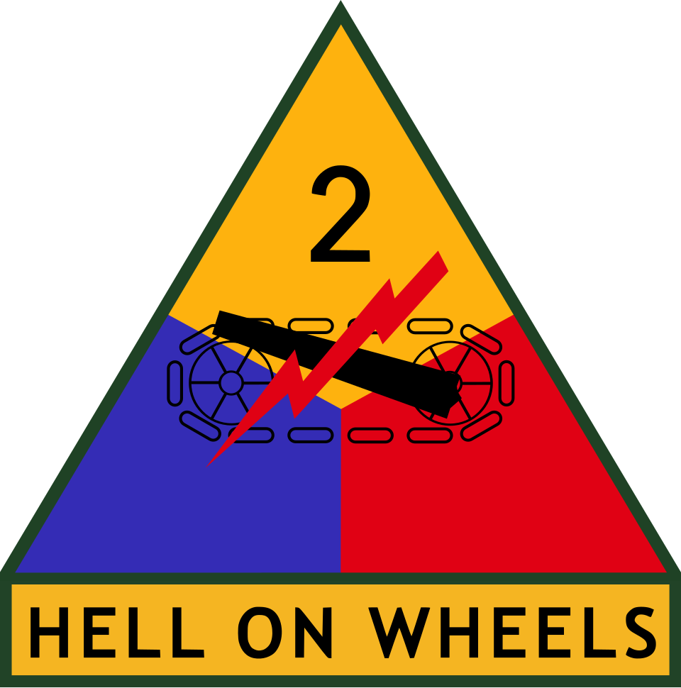 2ND ARMOR DIV COLOR PATCH. The 2nd Armored Division (“Hell on Wheels”) was an armored division of the United States Army. The division played important roles during World War II in the invasions of Germany, North Africa, and Sicily and in the liberation of France, Belgium, and the Netherlands. During the Cold War, the division was primarily based at Fort Hood, Texas, and had a reinforced brigade forward stationed in Garlstedt, West Germany. After participation in the Persian Gulf War, the division was deactivated in 1995.
