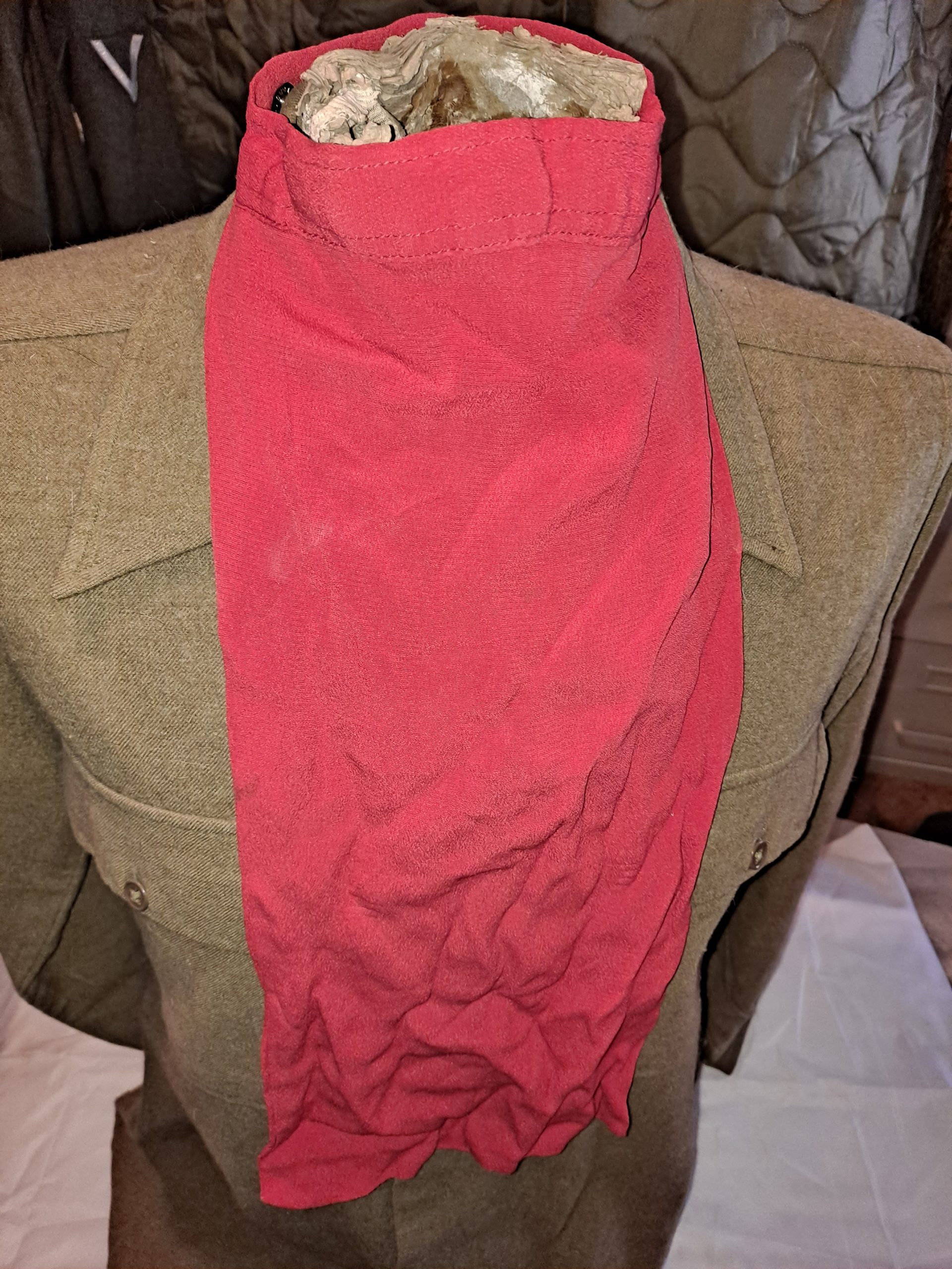 The ARTILLERY RED SCHARF is a distinguished military accessory, perfect for ceremonial occasions. Its vibrant scarlet hue honors the artillery branch and key personnel, making it an essential piece for service and utility uniforms.