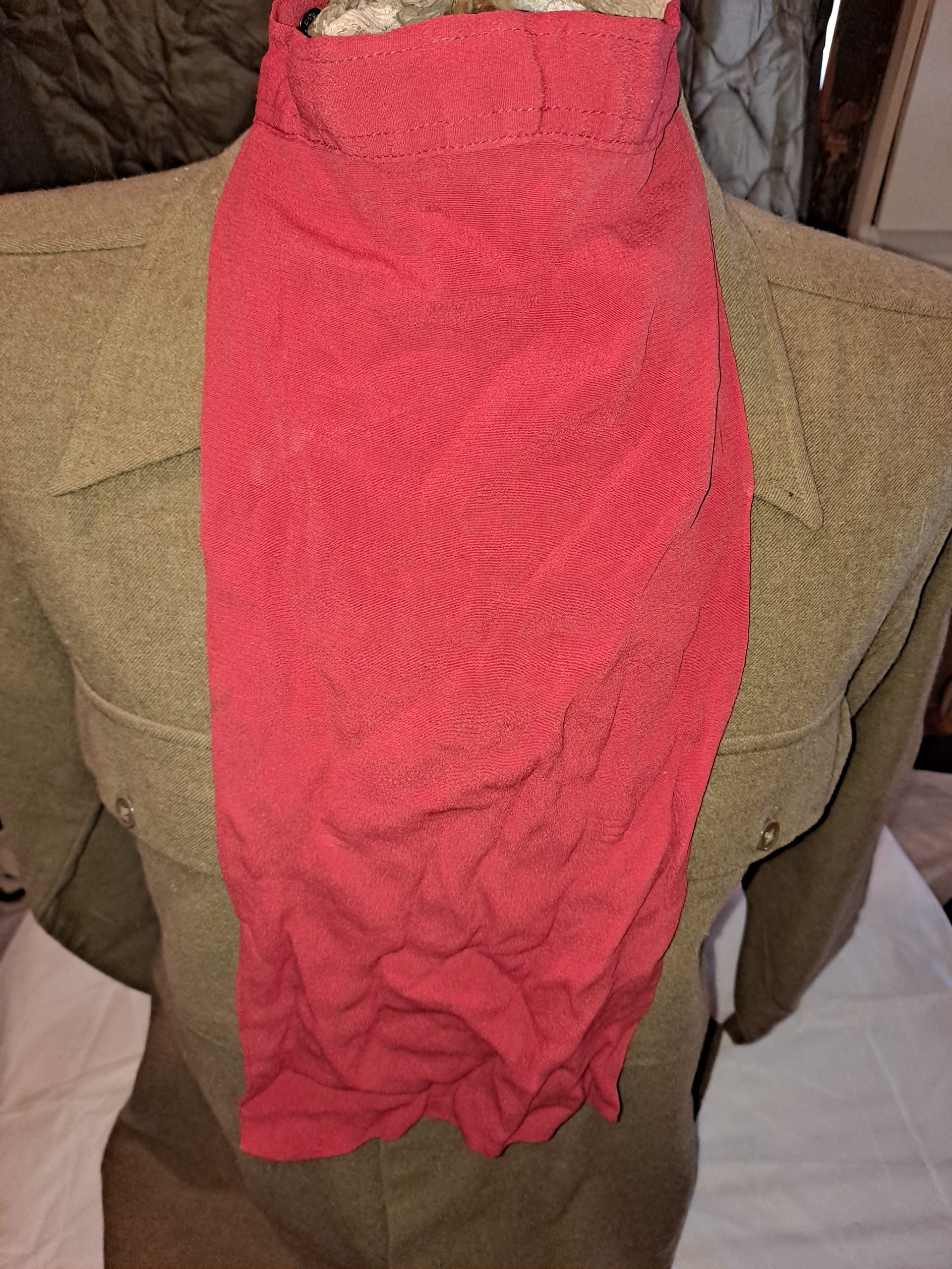 The ENGINEER RED SCHARF is a vintage bib-type scarf designed for ceremonial occasions, adding a touch of authenticity to army uniforms. Its striking red hue symbolizes the engineering branch, making it a distinguished accessory for collectors and enthusiasts alike.