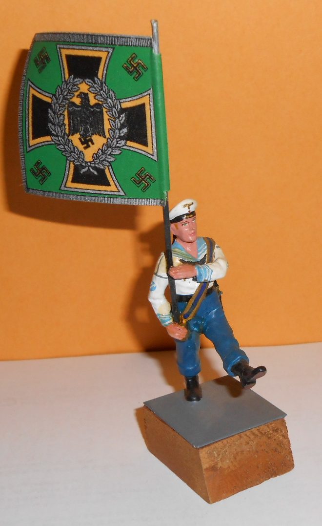 Lead Statue of WW2 German Kriegsmarine Band soldier standard-bearer with Green flag