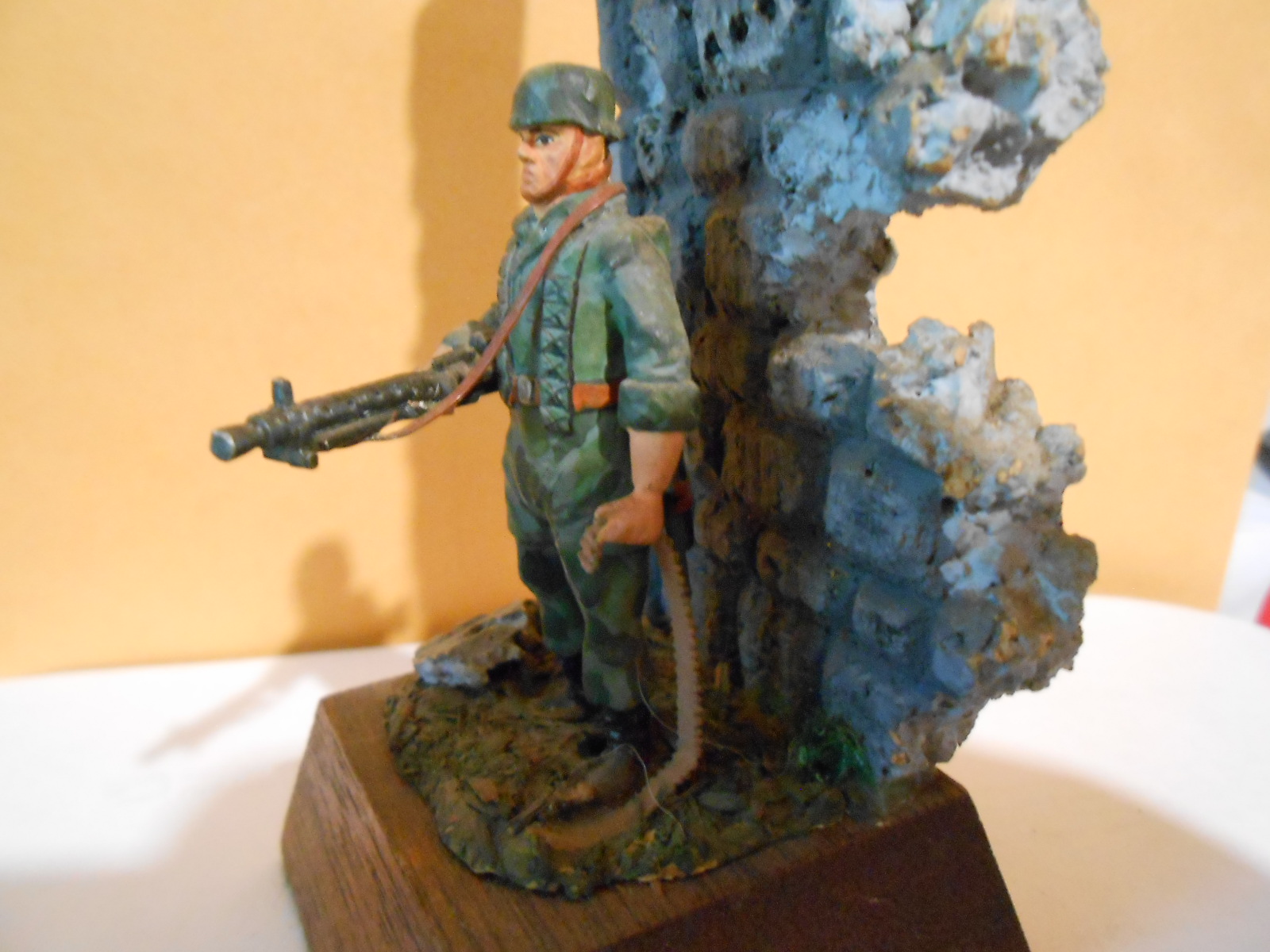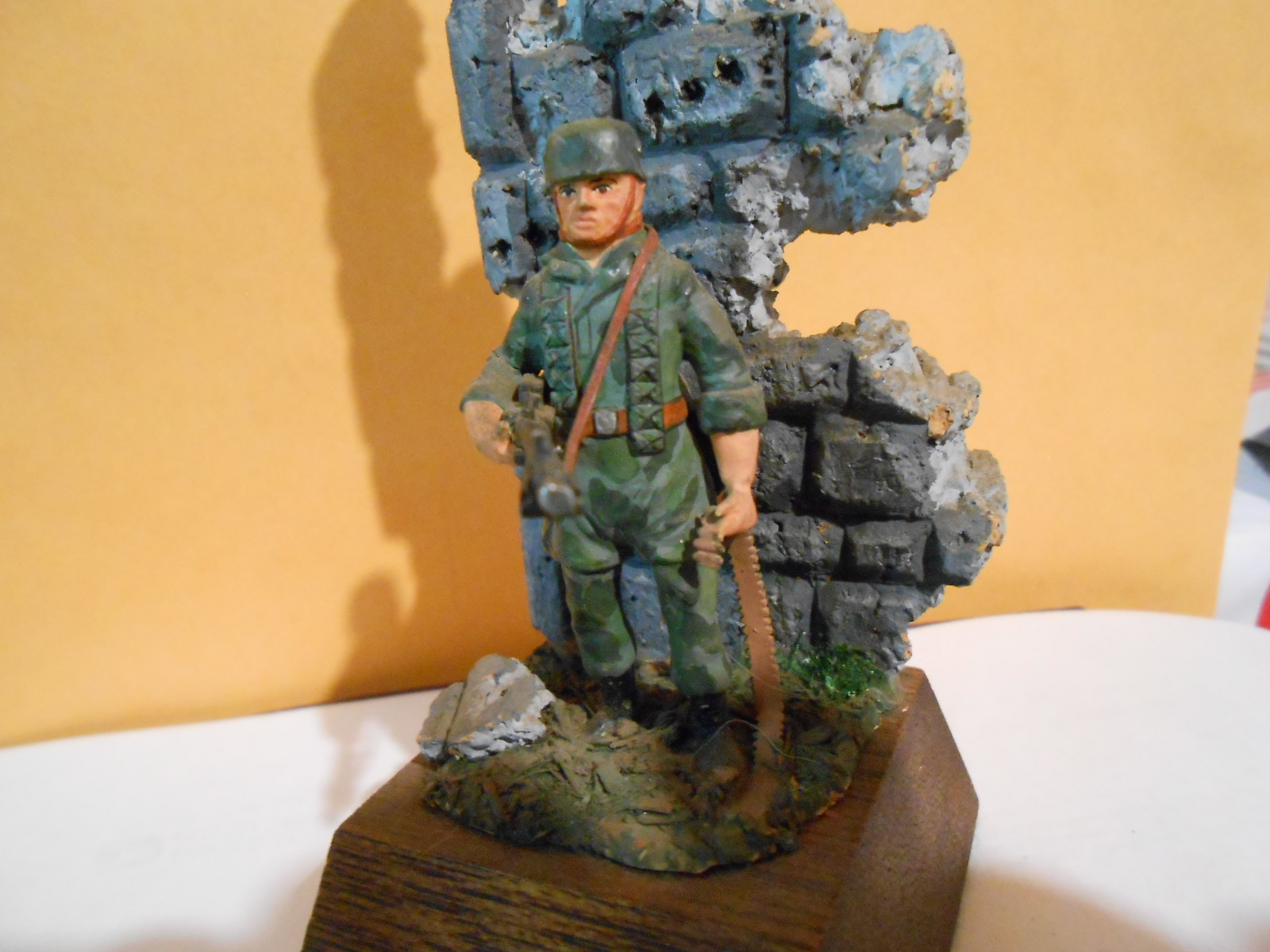 Statue of WW2 German Wehrmacht Paratrooper with MG-42 Machinegun Diorama ALEMANIA (GERMANY). No plaque on this one, Some chips and wear on the paint. Age and manufacture unknown.