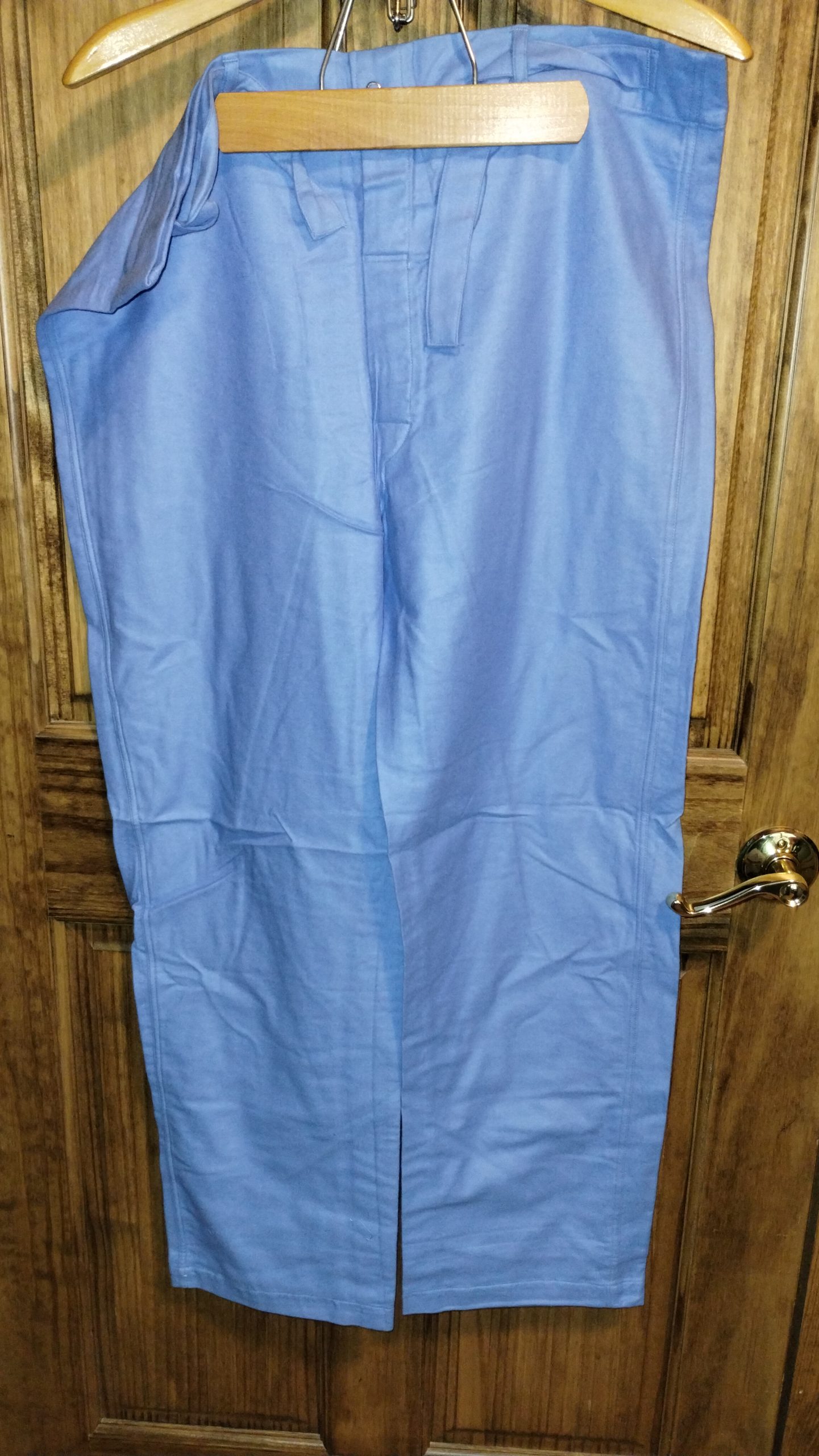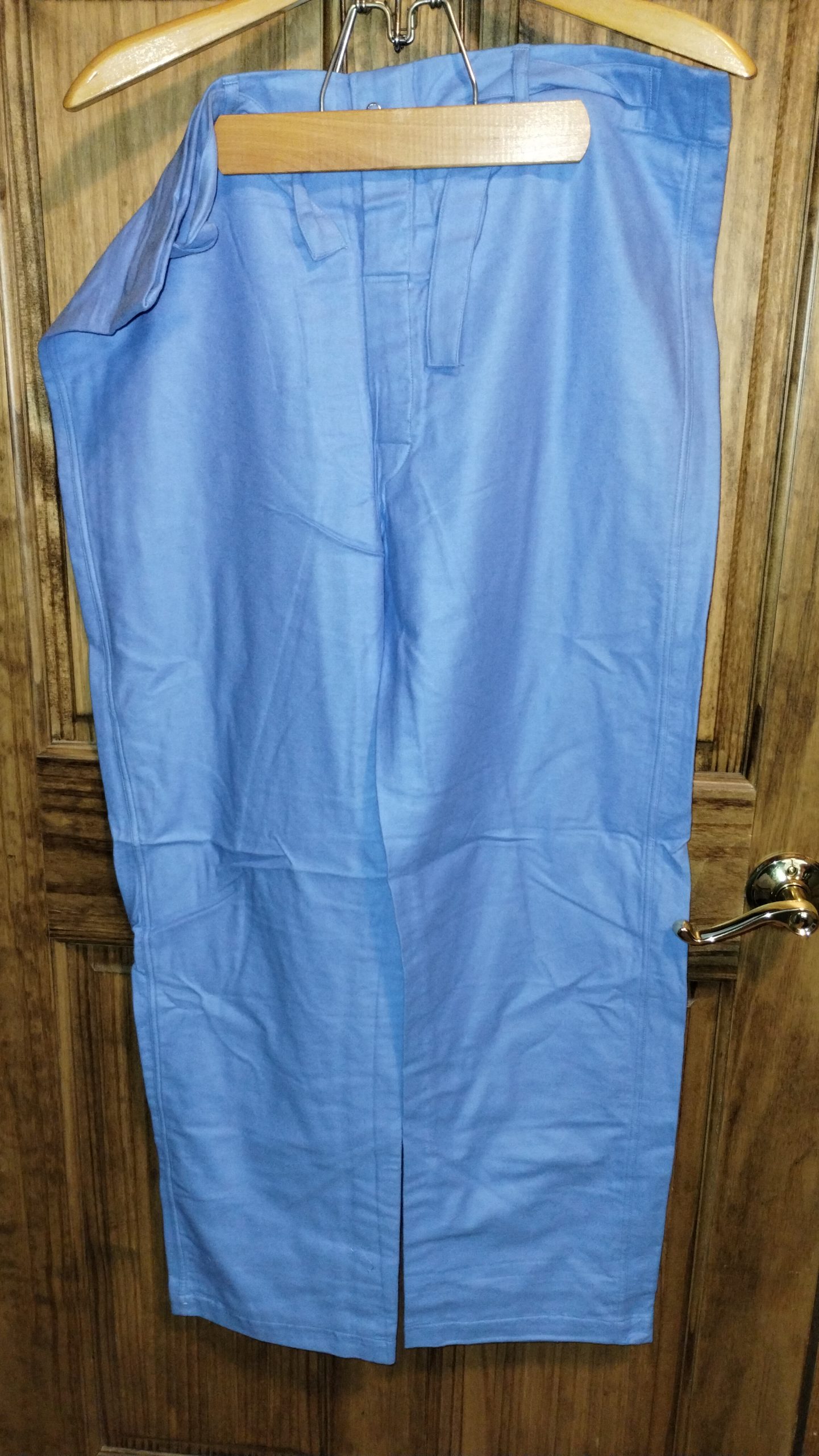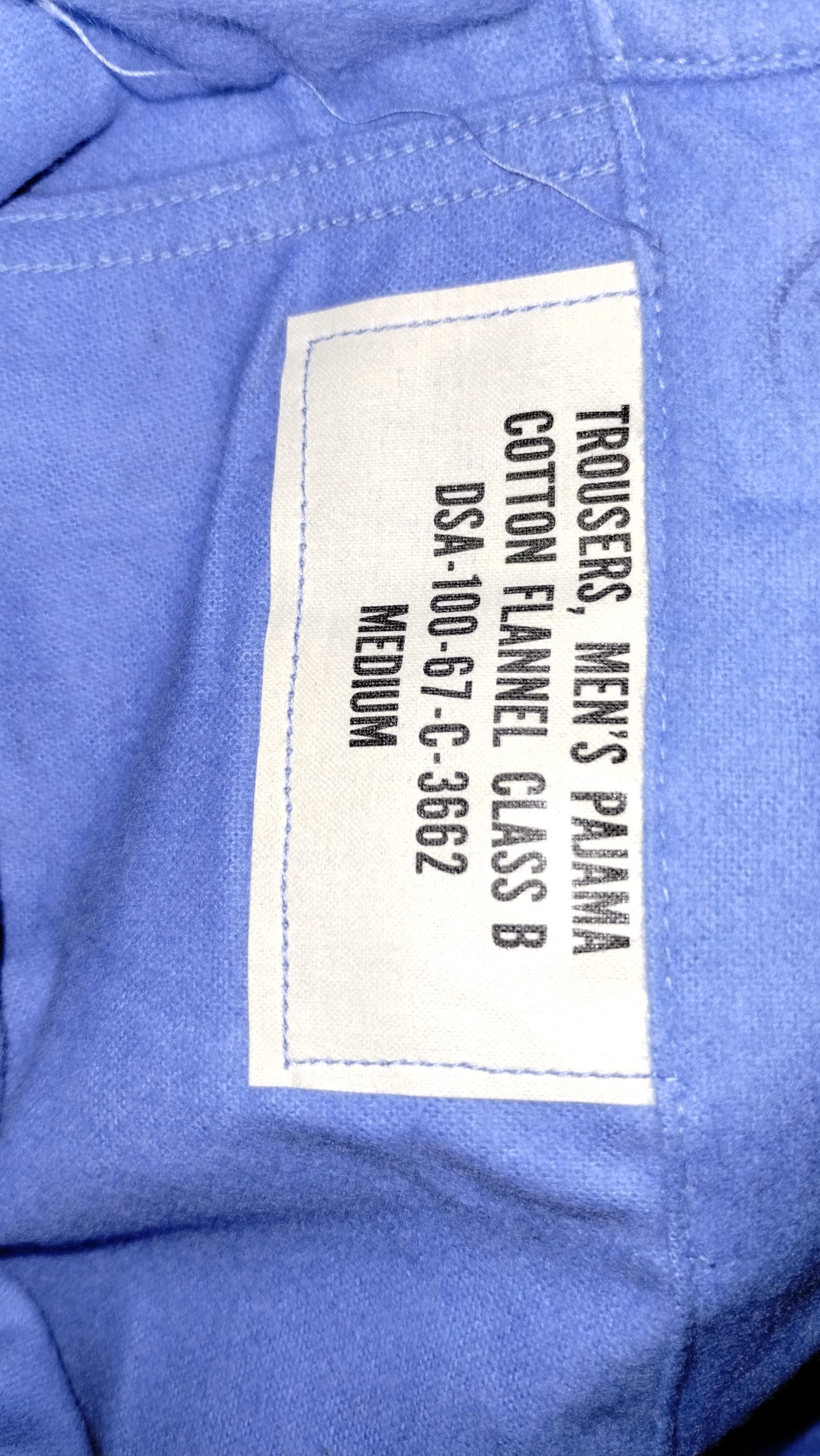 Experience a piece of history with these original Vietnam-era men’s pajama trousers. Crafted from blue cotton flannel, these unissued, medium-sized trousers offer comfort and authenticity, straight from 1967 military medical installations.