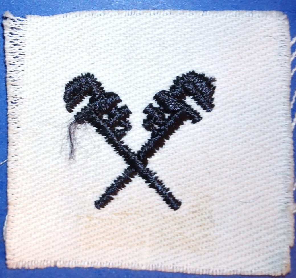 US NAVY SPECIALIST MARK – PIPEFITTER 1948 TO 1958. Established from various wearing the mark of shipfitter/blacksmith in 1948. Merged back into shipfitter in 1958. Rare mark only in service 10 years.