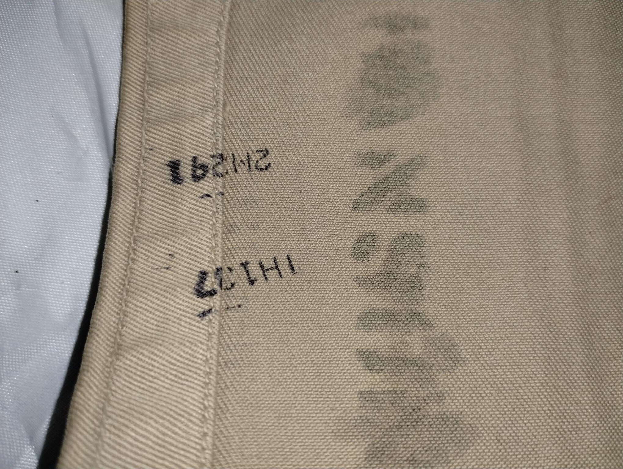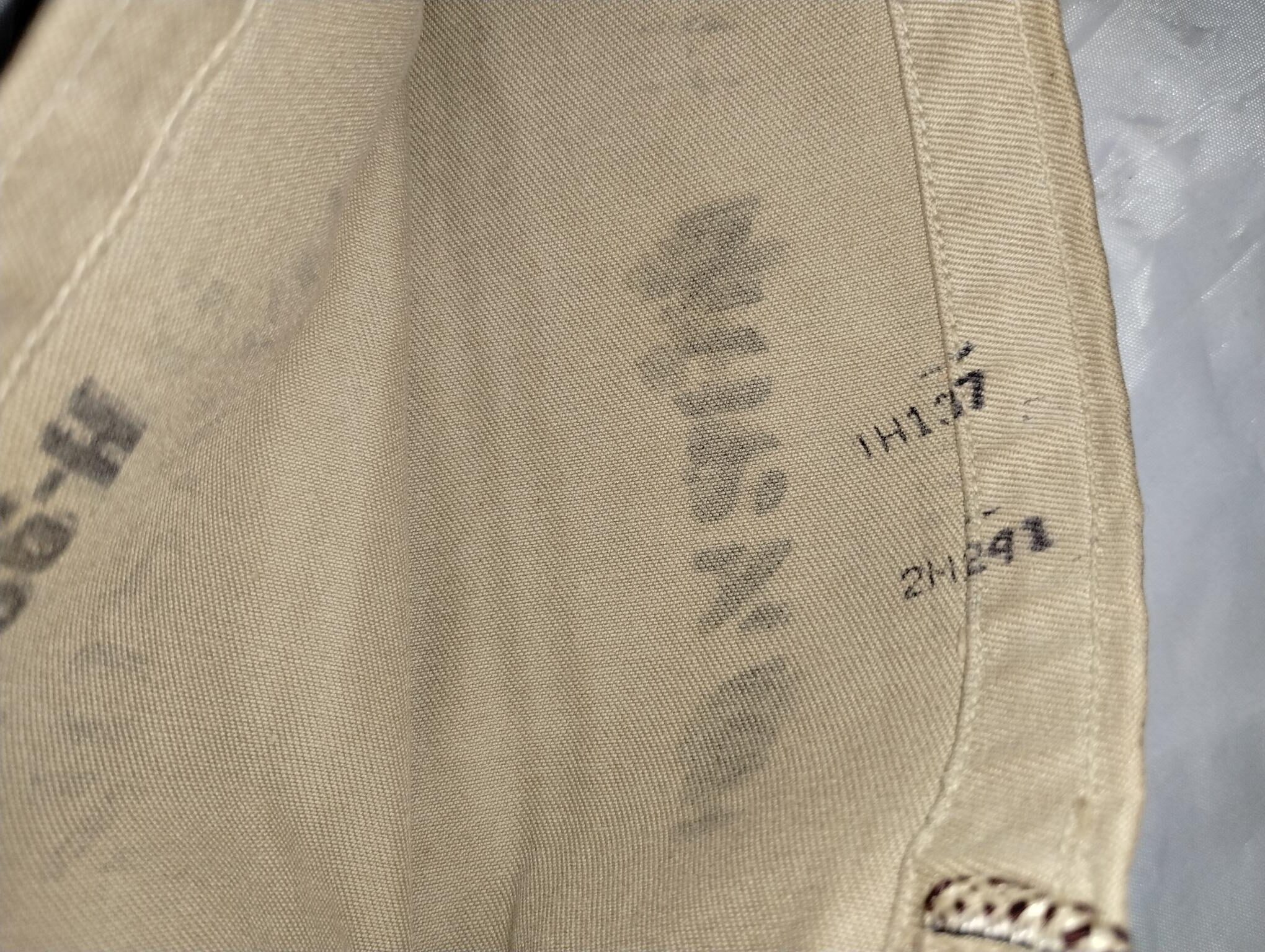 WW2 US Army enlisted man’s khaki Garrison Cap Air Corps super marine and golden orange piped. Size unknown. Some small stains may come out if dry cleaned.