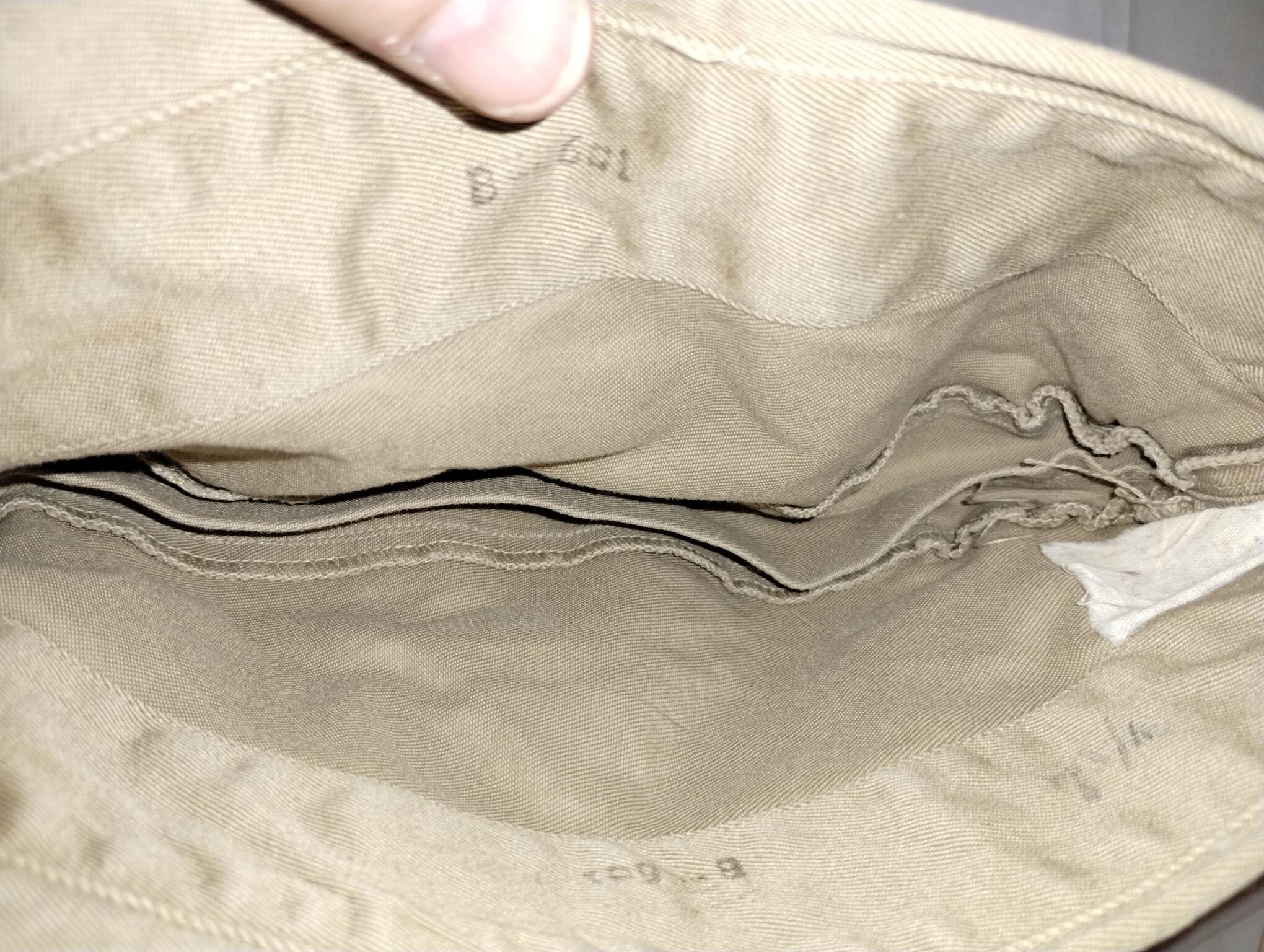 WW2 US USN/USMC enlisted man’s khaki Garrison Size 7 1/4″. Some small stains may come out if dry cleaned.
